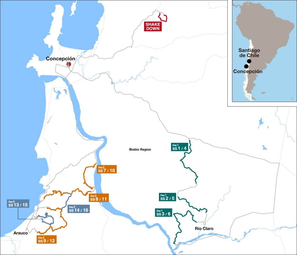 在週四的試跑與開賽儀式之後,正式賽程在周五正式登場。本站路線將在首日朝東南前進,行經熟悉的三個賽段、並在mid-day service之後重複一個循環;接著剩餘的賽程將來到比奧比奧河以南,沿著俯瞰太平洋的路線,在週六、周日分別完成3賽段/2賽段以及同樣的兩次循環。比奧比奧地區的賽程也加入了之前未行駛過的路段,當地路況混合了平整高速的鋪面、以及具技術性的崎嶇碎石環境。