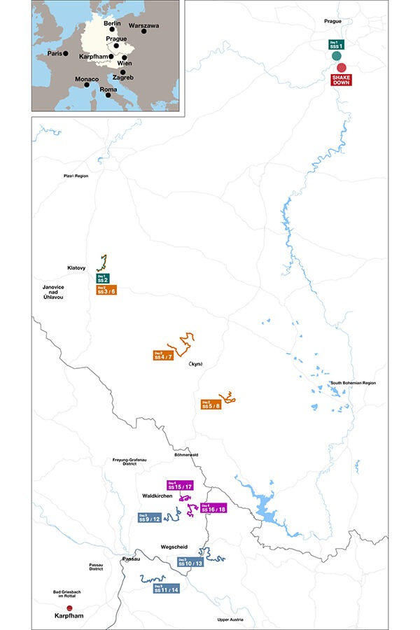 一年前,中歐拉力賽首次出現在WRC賽曆之中,也成為有史以來第一場跨越三個國家的單站賽事。儘管大本營設在德國巴伐利亞,該站的賽事序幕倒是與去年一樣,在270公里外、捷克布拉格的古城區正式揭開,並緊接著在城市邊緣的Velká Chuchle 賽馬場舉行SSS賽段、再到西南方的Klatovy鎮周圍進行一處略長的計時賽段。該賽段也成為隔日捷克境內所舉行三賽段、兩次循環之一。接著第三日的賽程將在SS10/SS13這條路線中跨越國境往返德國與奧地利,最後周日將回到德國的另外兩條路線進行兩次循環。