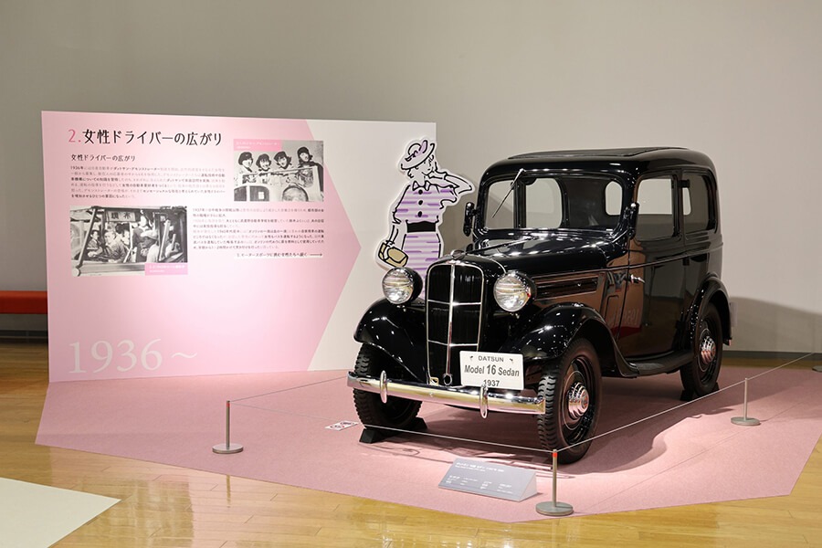 日產前身Datsun早在1936年就展開了推廣女性駕駛的活動,教導女性消費者學習開車並熟悉相關知識,1937年推出的16型Sedan有著靈巧又緊湊的特點,符合女性的開車需求。